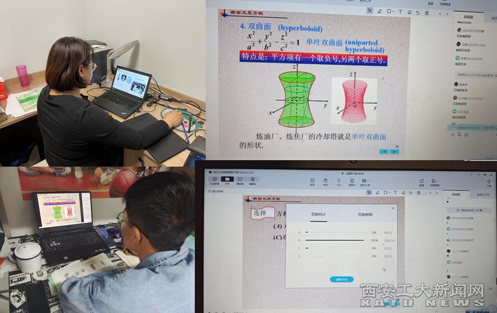 趙曄老師注重課前教學內容的準備,充分利用了學習通平臺進行教學資源建設,通過布置預習任務,使學生了解古今中外有關曲面方程的數學歷史背景,結合主題討論,搶答,選人,詞云等教學手段,并且通過分析不同瓷器曲面的幾何特點,使學生充分認識了我國古代的瓷窯技術已處于世界領先地位。課程中引用了我國數學家華羅庚的名言“形缺數,難入微;數缺形,少直觀”,體現了在多元函數的學習中,數形結合思想的重要性。在學習旋轉曲面方程時,通過展示旋轉曲面的運動軌跡短視頻,以世界上口徑最大,靈敏度最高的巨型射電望遠鏡----中國天眼FAST---南仁東為例,講述了我國科技方面的重大成就,提升了學生的愛國熱情和民族自豪感。更深刻的讓學生了解到數學的學以致用,從而提升學生濃厚的學習興趣。