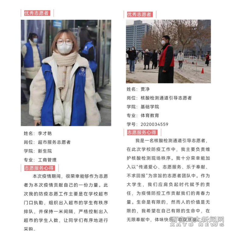 有序檢測核算、錯峰宿舍用餐、克服生活不便、堅持認真學習......在這特殊的時刻,全體西工學子繼承發揚兵工精神,在防疫中學習、在學習中防疫,服從指揮,迎難而上,身體力行,讓忠誠進取、精工博藝的西工印痕更加深刻,以實際行動上好疫情防控“思政大課”,讓德育之花開滿西安工大。