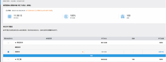 教材出版社提供的U校園和Welearn平臺,不僅呈現(xiàn)了教材的電子版、配備了主題內(nèi)容的音頻資料,師生還可以借助平臺其他可利用資源,如:為了夯實英語基礎,教師在U校園上添加了“新四級核心基礎突破(詞匯與語法)”,同時可以設置學習模式并監(jiān)督學習過程,有效延伸了課堂內(nèi)容,拓展了學生學習空間。