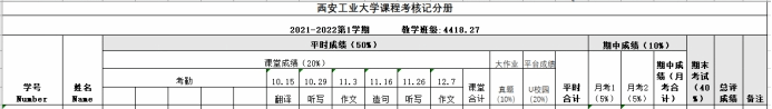 過程性評價成績=課堂成績×20%+Fif月考1×5%+Fif月考2×5%+U校園×20%+大作業(yè)×10%