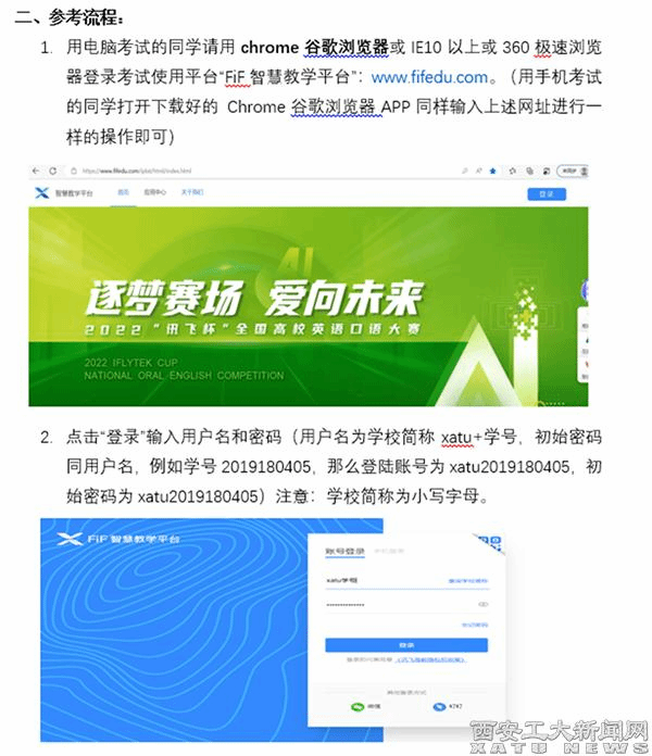 為了便于學(xué)生在家進行大學(xué)英語相關(guān)資料的學(xué)習(xí)和報到后的入學(xué)測試的準(zhǔn)備,促進開課后課程學(xué)習(xí)的有效開展,特編寫《訊飛FIF考試與學(xué)習(xí)平臺操作指南》,對于所使用的APP和網(wǎng)絡(luò)平臺信息進行說明,提前完成所有設(shè)備、APP和相關(guān)軟件的下載。