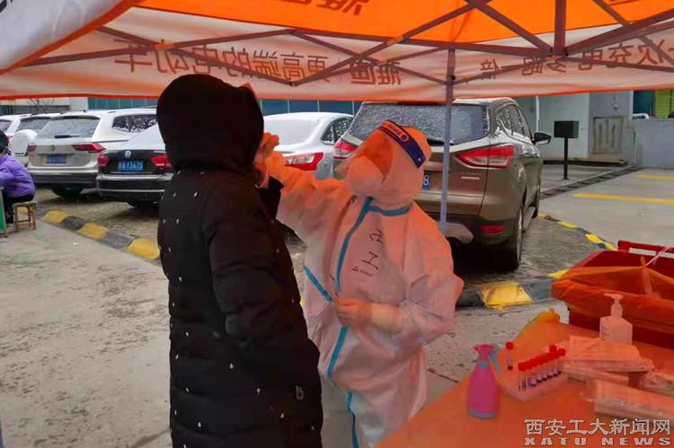 疫情,來勢洶洶;防控,十萬火急;初心,老而彌堅。為全力打贏疫情殲滅戰,進一步提高核酸采樣能力,學校家屬區發布了征集抗疫志愿者的通知。當解老師在小區業主群內看到了急召有醫學背景的核算采樣員的通知,她沒有猶豫,積極響應號召,不顧個人安危,報名成為了金花東家屬院一名志愿者,第一時間投入“戰斗”。面對周邊人的不解,她笑著說:“我雖然年紀大了,但我是一名醫務工作者,做這些是本分”。就這樣,有醫學背景的解老師經過簡短的培訓之后匆匆上崗了。